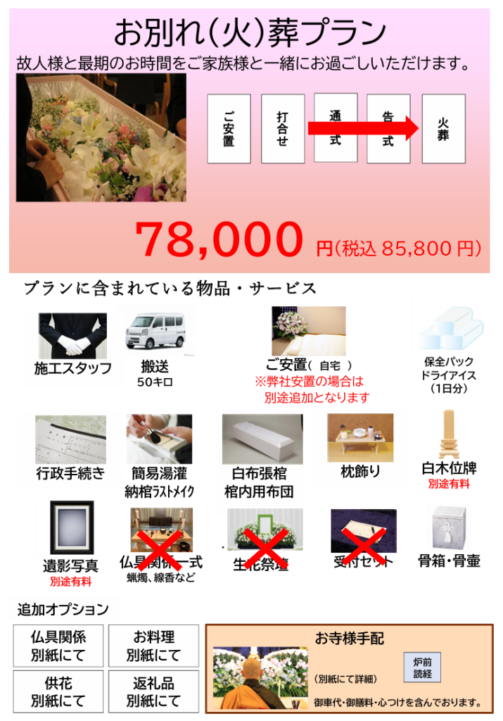 ※弊社の安置対応は自社安置と市営斎場を利用を併用しながら、プラン内のコースにより金額が異なりますのでご確認ください